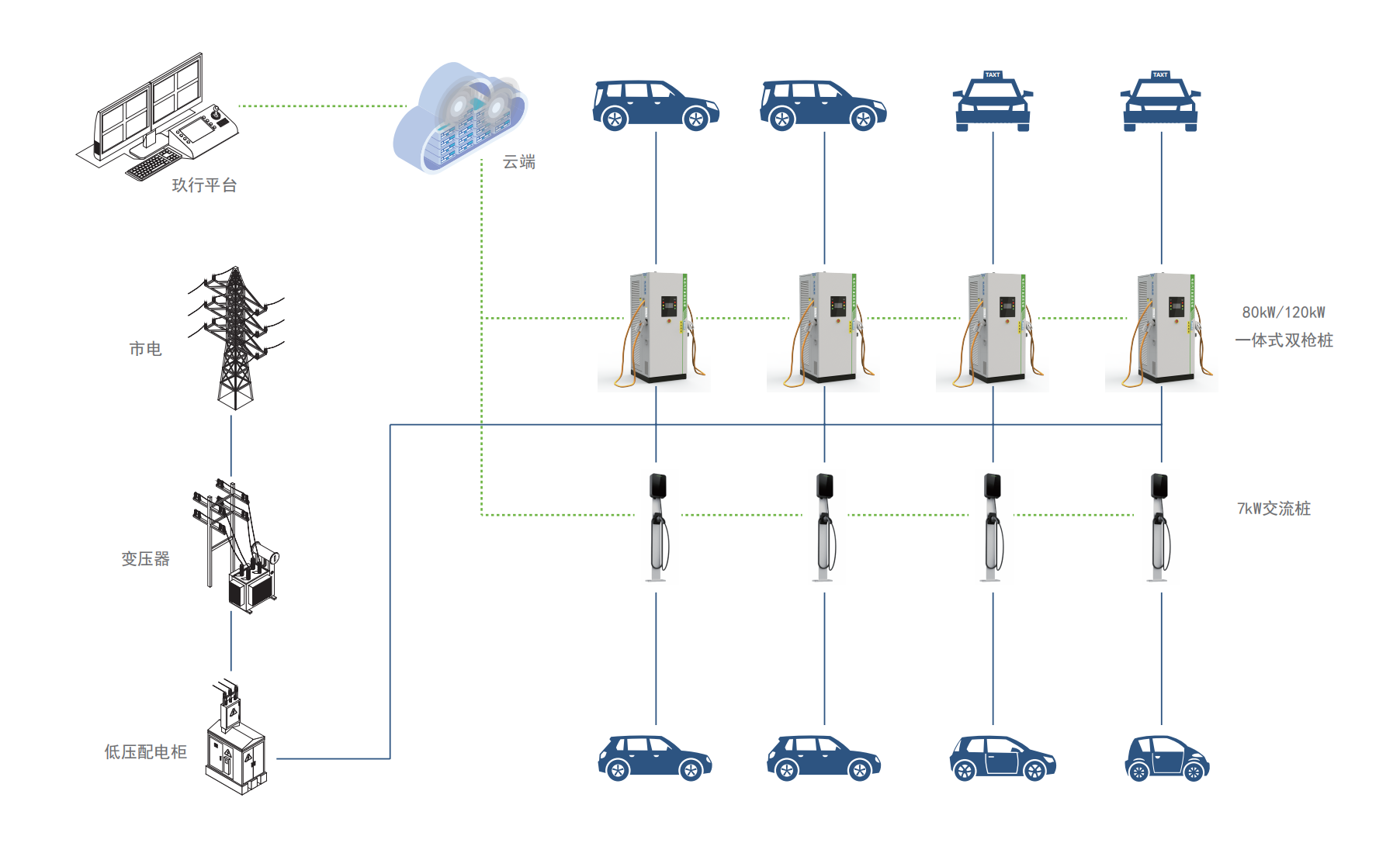 1)采用交流慢充和直流快充想结合方式充电,满足不同需求客户的充电需求: