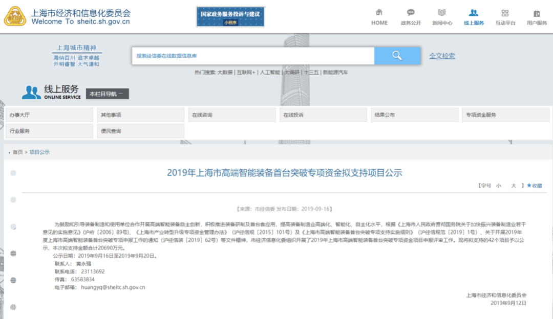 上海市高端智能装备首台突破专项资金项目,是围绕国家和本市振兴装备制造业的重点领域,由上海市企业通过承担国家及地方研制任务或通过自主研发,首次制造并具有重大影响的项目。专项资金的设立旨在鼓励和引导装备制造和使用单位合作开展高端智能装备自主创新,积极推进装备研制及首台套应用,提高装备制造业高端化、智能化、自主化水平,加快形成一批具有自主知识产权的核心技术和重大装备,推进上海重大技术装备首台(套)业绩突破,切实提高上海装备制造业的自主创新能力和国际竞争力。