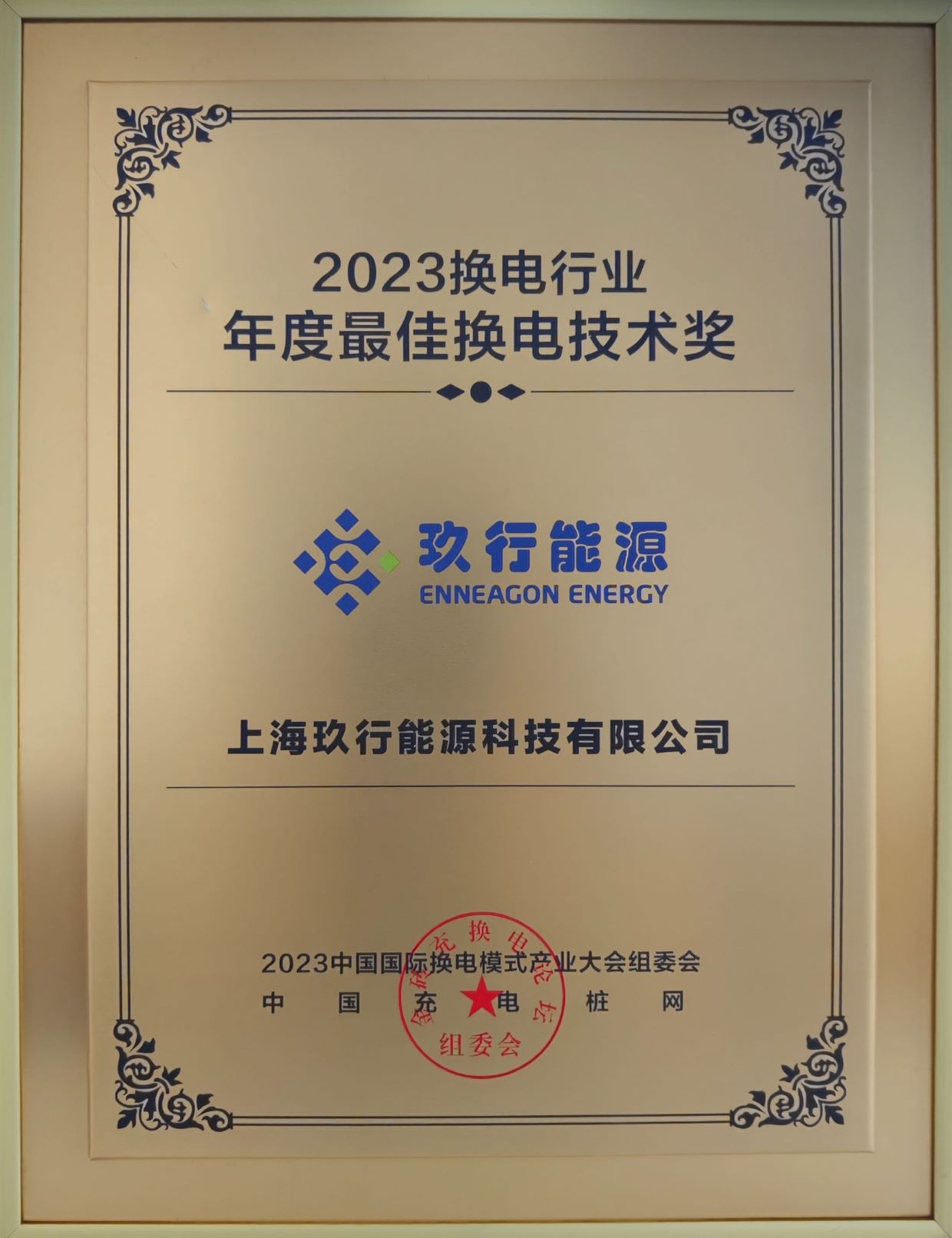 玖行能源再度蝉联:“换电行业年度最佳换电技术奖“