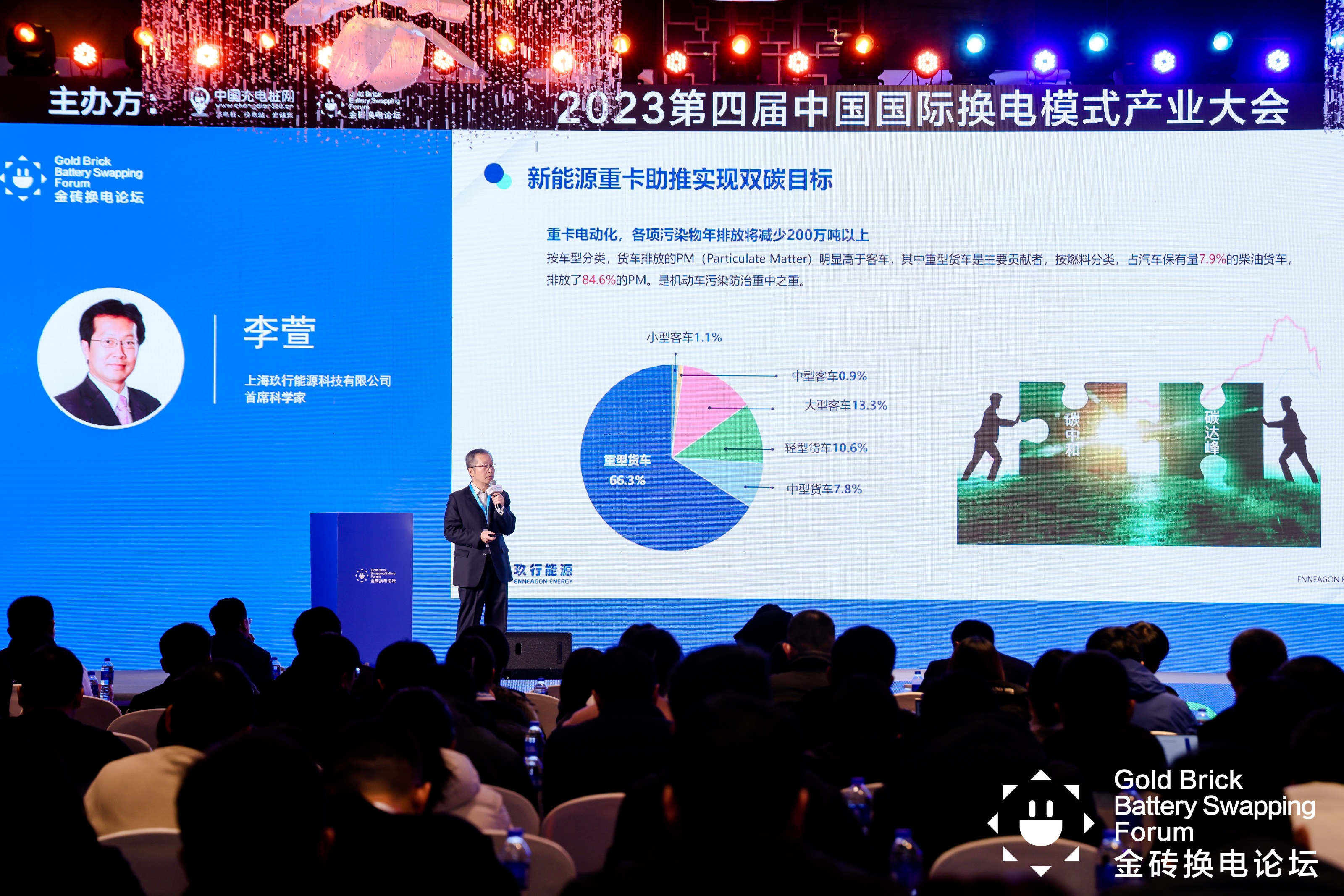 上海玖行能源科技有限公司首席科学家李萱发表主题演讲——《新能源重卡换电模式》。