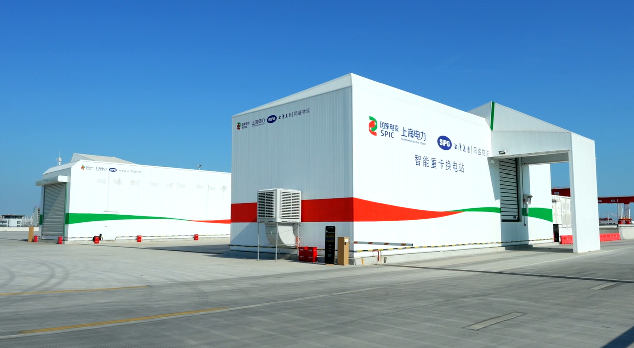 上港零碳无人驾驶换电重卡项目,位于上海市临港新片区集疏运中心内,是洋山港水公铁集疏运系统的配套项目。项目规划建设约15MW的光伏电站、4MW/8MWh的储能、5座重卡换电站等,为往返洋山港与新片区集疏运中心之间(单程35KM)的智能重卡提供绿色能源服务。整站无人值守,全方位适配无人驾驶智能重卡;双工位换电机器人协同换电,有效实现2分钟内重卡换电,满足单日最高288车次换电需求;搭载玖行数字能源运营管理平台,智能调度,智慧运维,高效管理动力电池全生命周期,全效助力双碳目标与零碳交通。